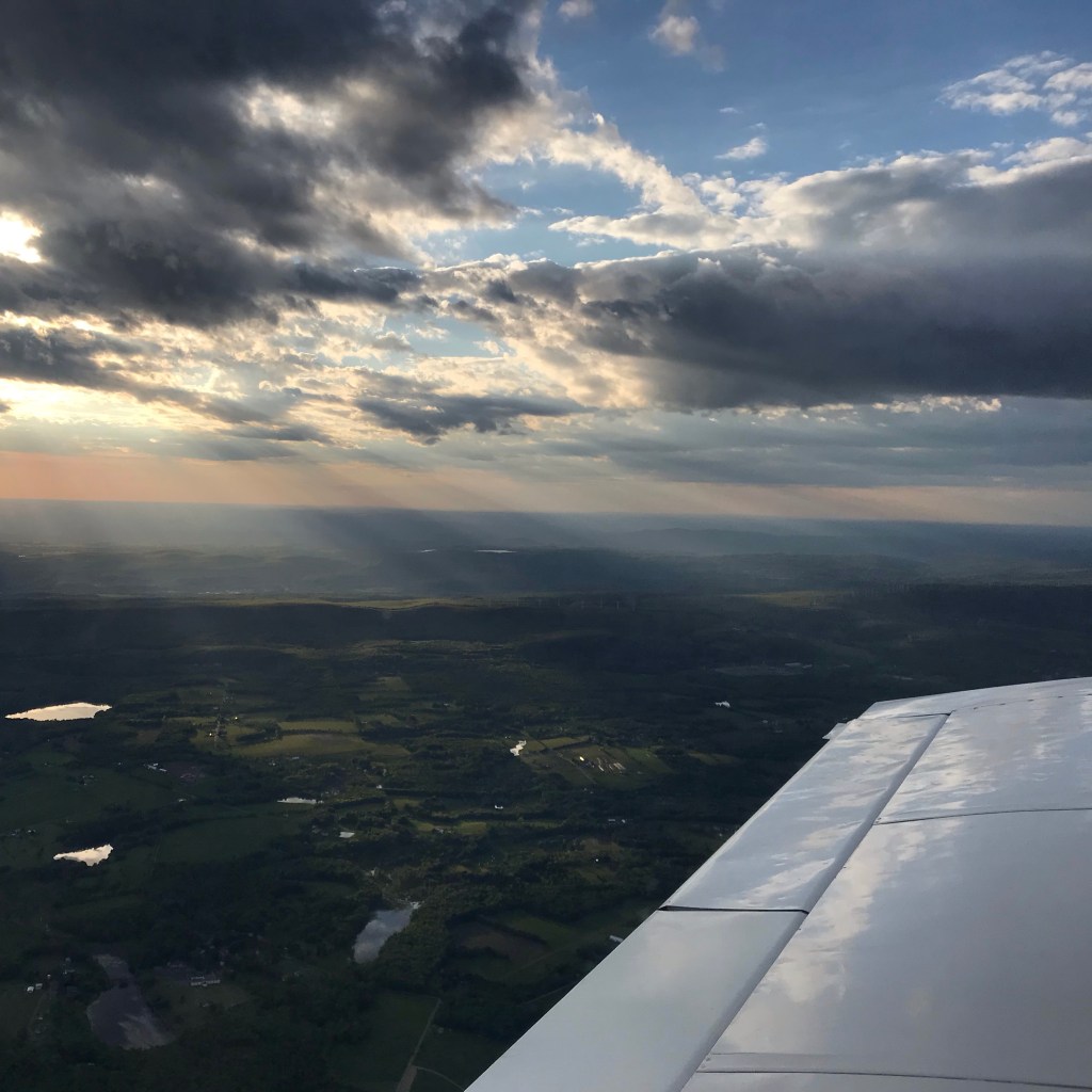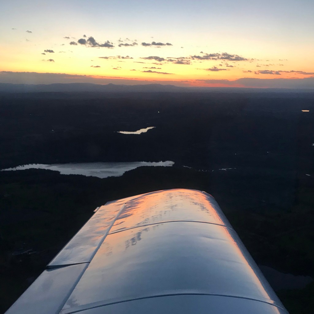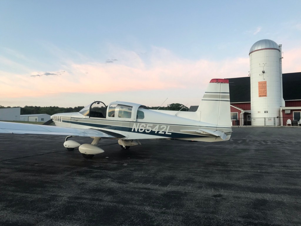 One last 30-minute leg to the Westfield-Barnes Regional Airport (KBAF) was a smooth flight with the sun setting off the left wing. An easy finish into a Class D airport to cap off the delivery of this Grumman Traveler!